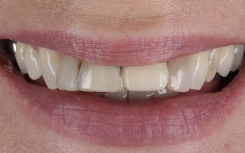 finally, we bond to the teeth. bonding involves applying tooth-coloured filling material, known as composite, to the surface of the teeth to alter the overall shape, size, and colour of the tooth. it can make them look more uniform in shape and repair imperfections such as worn edges, chips, or stains. the composite can be placed over the whole front surface of the tooth, in the form of a veneer, or just on the edges, known as edge bonding. this process does not involve drilling or injections and can be done in a single visit.